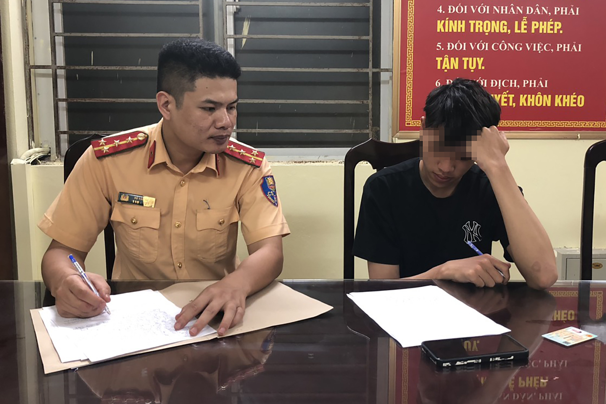Sau khi được lực lượng CSGT tuyên truyền, P. đã nhận ra hành vi của mình là sai. Đồng thời, P. đã viết bản cam kết không tái phạm.