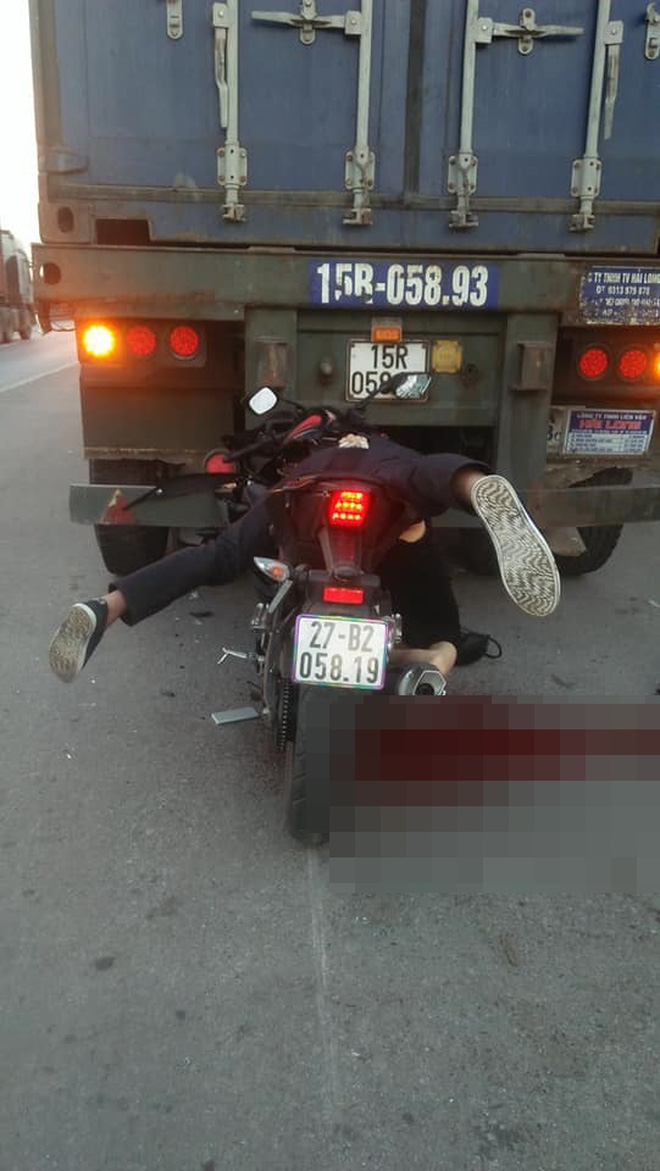 14/07/2020 17:18Nam thanh niên chạy xe máy cắm chặt vào đuôi container, tư thế tử vong gây ám ảnh