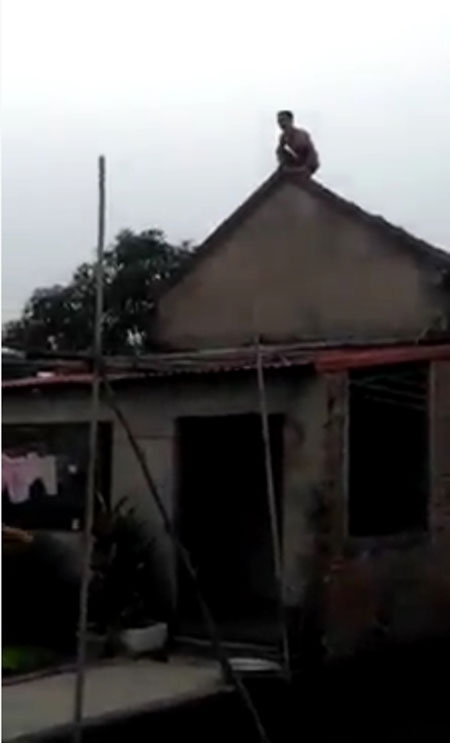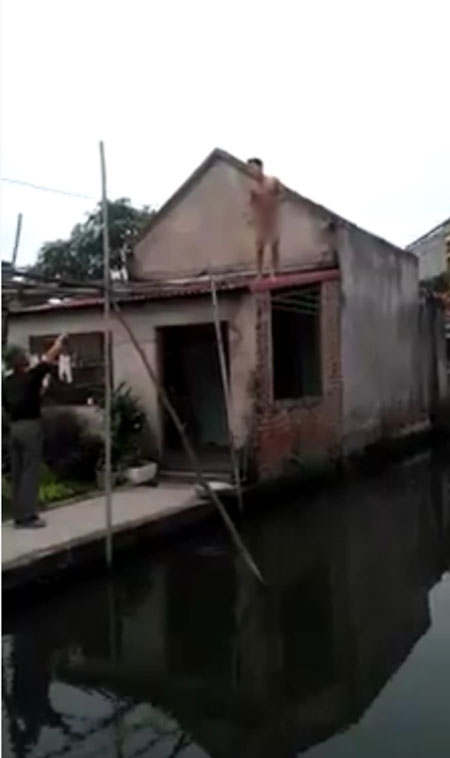 19/12/2015 14:11Nam thanh niên khỏa thân leo lên nóc nhà giữa trời giá lạnh