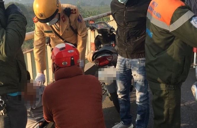 Khi lực lượng CSGT có mặt, nam thanh niên ôm lan can cầu đòi nhảy xuống mặc cho nhiều người đứng lại can ngăn. Bằng biện pháp nghiệp vụ, nam thanh niên được đưa vào trong an toàn, sau đó trở về công an phường Bồ Đề (Long Biên).