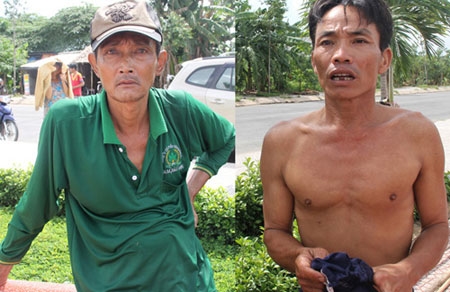 Ông Khoa và Hiển còn vẻ thảng thốt sau khi được cứu. Ảnh: Cửu Long |