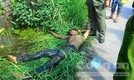 Khoảng 7 giờ 30 ngày 11/6, nhiều người dân ở khu phố 8, phường Trường Thọ, quận Thủ Đức TP.HCM hoảng sợ khi thấy một thanh niên khoảng 25 tuổi có biểu hiện ngáo đá cởi trần nhảy xuống con mương gần đó.