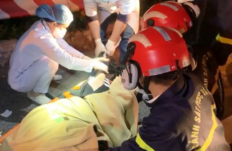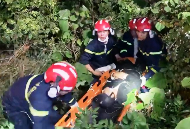 Nạn nhân trong tình trạng gãy chân, bất tỉnh, điện thoại vỡ nát. Đến lúc lực lượng chức năng tìm cách đưa lên khỏi vực núi, nam thanh niên mới tỉnh lại.