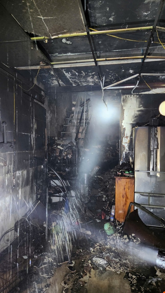 Theo người dân, họ thấy lửa bùng lên từ tầng 1 của ngôi nhà rồi nhanh chóng lan lên tầng 2.