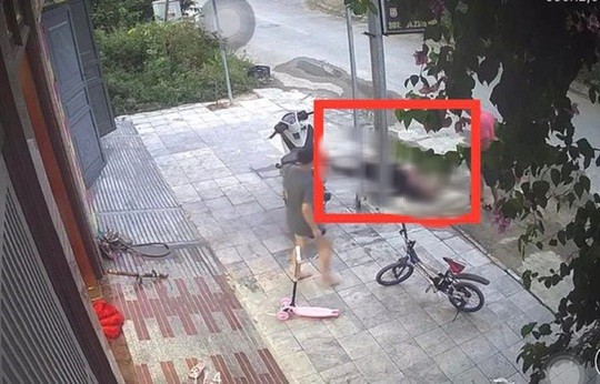 Qua hình ảnh từ clip cho thấy, khi chơi ở ngoài vỉa hè, anh N. có cầm tay vào cột sắt (dựng cạnh cột điện trên vỉa hè) thì bỗng dưng co rúm người lại, sau đó ngã quỵ xuống nền đất.