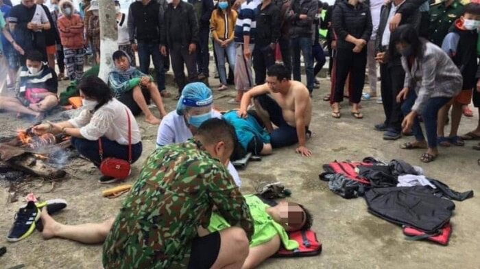 "Chiều 26/2, gia đình em lên ca nô trở vào đất liền. Tuy nhiên, khi ca nô đang vào bờ thì bất ngờ sóng lớn đánh lật chìm, mọi người rất hốt hoảng. Lúc đó em mắc áo phao trôi nổi trên mặt biển. Khoảng hơn 30 phút được lực lượng chức năng cứu hộ đưa vào. Hiện giờ sức khỏe em đã ổn định", tờ Dân Việt dẫn lời em V.