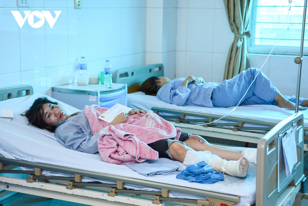 “Không gian tối sầm hết lại, khói bụi mịt mù nên tôi không nhìn thấy gì, chỉ biết cắm đầu cắm cổ chạy, tôi bị va đầu vào tường, chạy mất cả dép nên bàn chân hiện bị bỏng, rất rát. Ra đến ngoài mới biết là mình bị bỏng. Khi ra ngoài thấy tất cả mọi người ai cũng bị đau sau đó mọi người cố dìu nhau xuống tầng 1 rồi công ty đưa tới trung tâm y tế TP.Từ Sơn, sau đó sơ cứu rồi đưa bọn em tới Bệnh viện Đa khoa Bắc Ninh để điều trị” - chị Hợp kể.