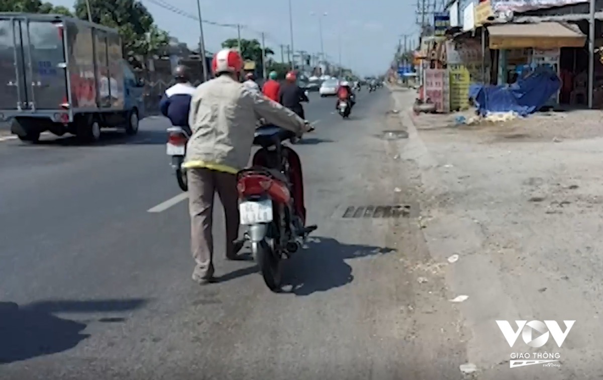 Ngày 05/03/2021, trong vai một “con mồi” bị cán đinh trên cầu vượt Nguyễn Văn Linh – Quốc lộ 1A, TP. Hồ Chí Minh, PV VOV Giao thông đã chủ động xả hơi xẹp lốp sau và dắt bộ chiếc xe dưới cái nắng chang chang bỏng rát của Sài Gòn.