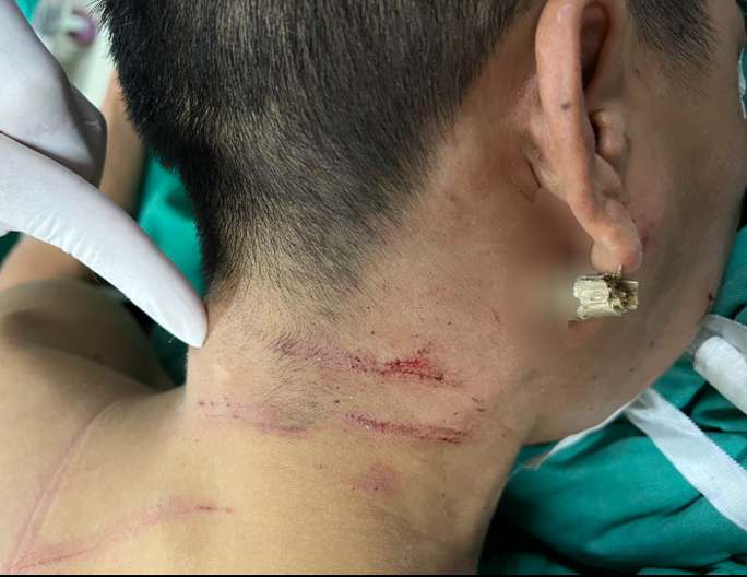 Trước đó, chiều 2-9, anh H.V.C. (31 tuổi, quê ở Tuyên Quang) bị ngã xe máy khi đang đi trên đường. Lúc này, anh C. bị một thanh tre đâm xuyên qua cổ theo hướng từ trước về sau, từ dưới dái tai bên phải ra phía sau gáy bên trái.