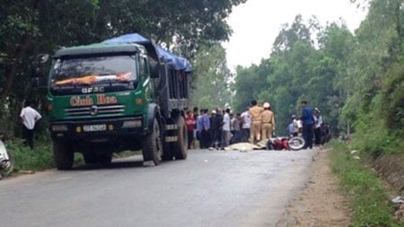 ếc xe máy chở hai cô gái đang cố vượt qua xe tải thì xảy ra va chạm. Người cầm lái ngã ra đường và bị cán tử vong tại chỗ.