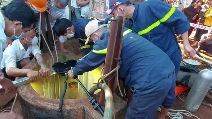 Do giếng sâu 30 m, mực nước sâu 13 m nên phải mất hơn 1 giờ, thi thể cháu T. mới được lực lượng chức năng đưa lên trên.
