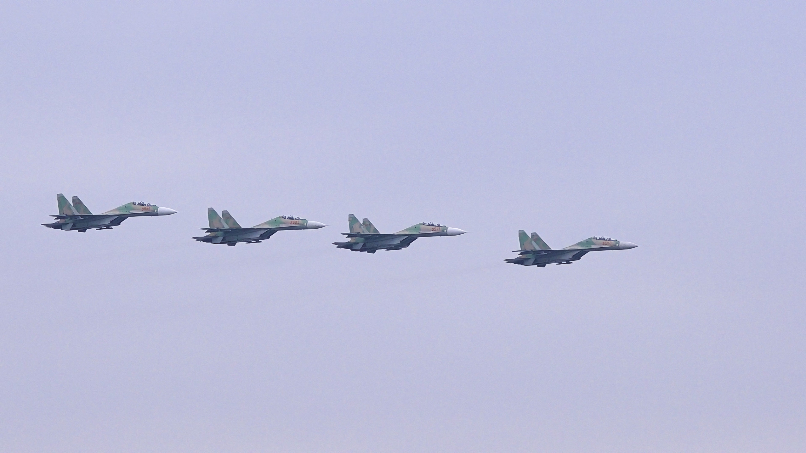 Liên tiếp trong các ngày 25, 26/11, 7 tiêm kích SU-30MK2, được mệnh danh là 'Hổ mang chúa' hiện đại bậc nhất của Không quân Việt Nam và 7 trực thăng Mi các loại đã hợp luyện trên bầu trời khu vực sân bay Gia Lâm, Hà Nội.