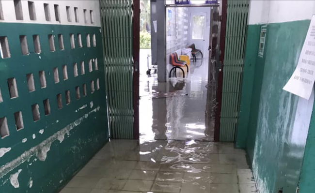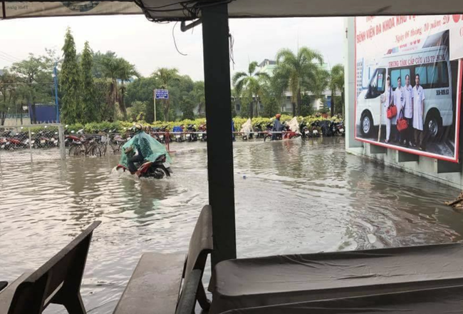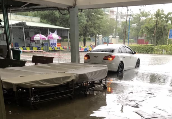 Một nhân viên y tế công tác tại BV trên cho biết, năm nào cũng vậy chỉ cần mưa lớn một chút sẽ bắt đầu ngập khu phía trước cổng bảo vệ rồi lan vô các khoa phòng.