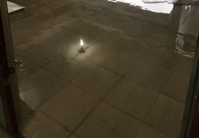 Đến hơn 19h30 cùng ngày, hành lang và sân BV vẫn ở tình trạng chìm sâu trong nước.
