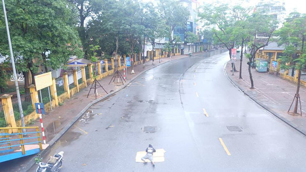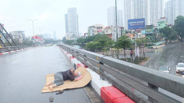 Không chỉ nằm ở 1 tuyến phố mà người này còn trải chiếu ở nhiều tuyến đường khác nhau, từ bên trên cầu vượt Ngã Tư Sở tới đường Trần Đại Nghĩa, từ lề đường tràn ra hẳn giữa đường. Đúng là mỗi người có một cách để trải nghiệm và cảm nhận về một Hà Nội bình yên và khác lạ hơn so với mọi ngày, thế nhưng cách thức người đàn ông này lựa chọn có vẻ khá nguy hiểm.