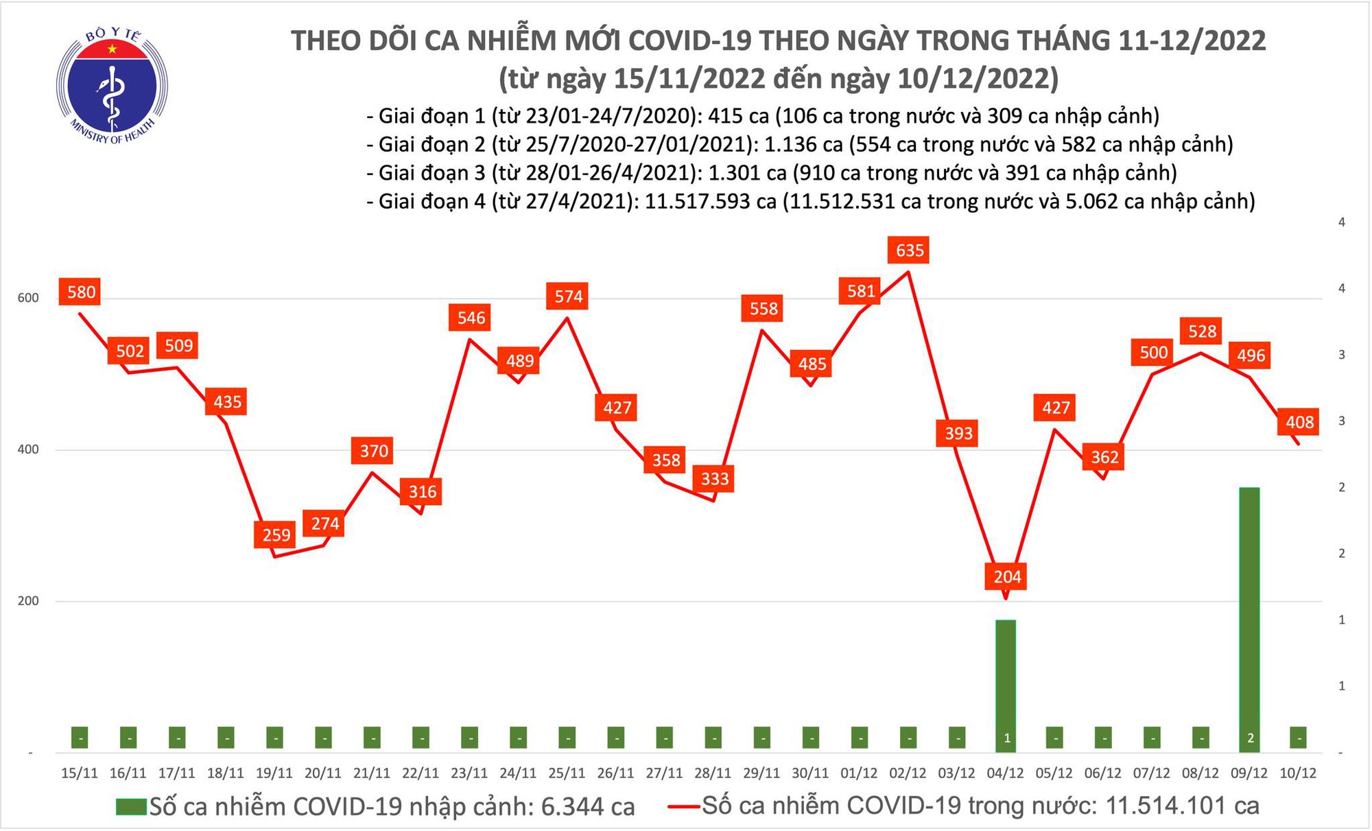 11/12/2022 01:11Ngày 10/12, số mắc COVID-19 mới giảm nhưng bệnh nhân nặng tăng