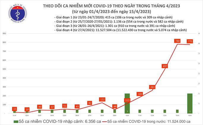 16/04/2023 02:30Ngày 15/4, ca mắc Covid-19 giảm nhẹ nhưng vẫn ở mức cao