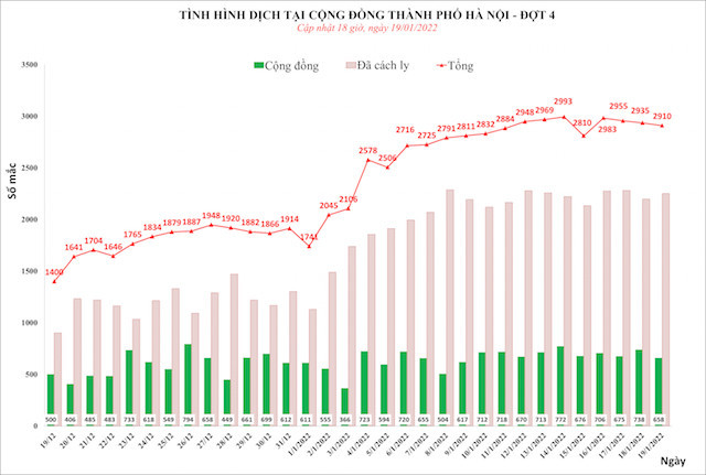 20/01/2022 01:13Ngày 19/1, Hà Nội thêm 2.910 ca mắc Covid-19, số ca trong cộng đồng giảm