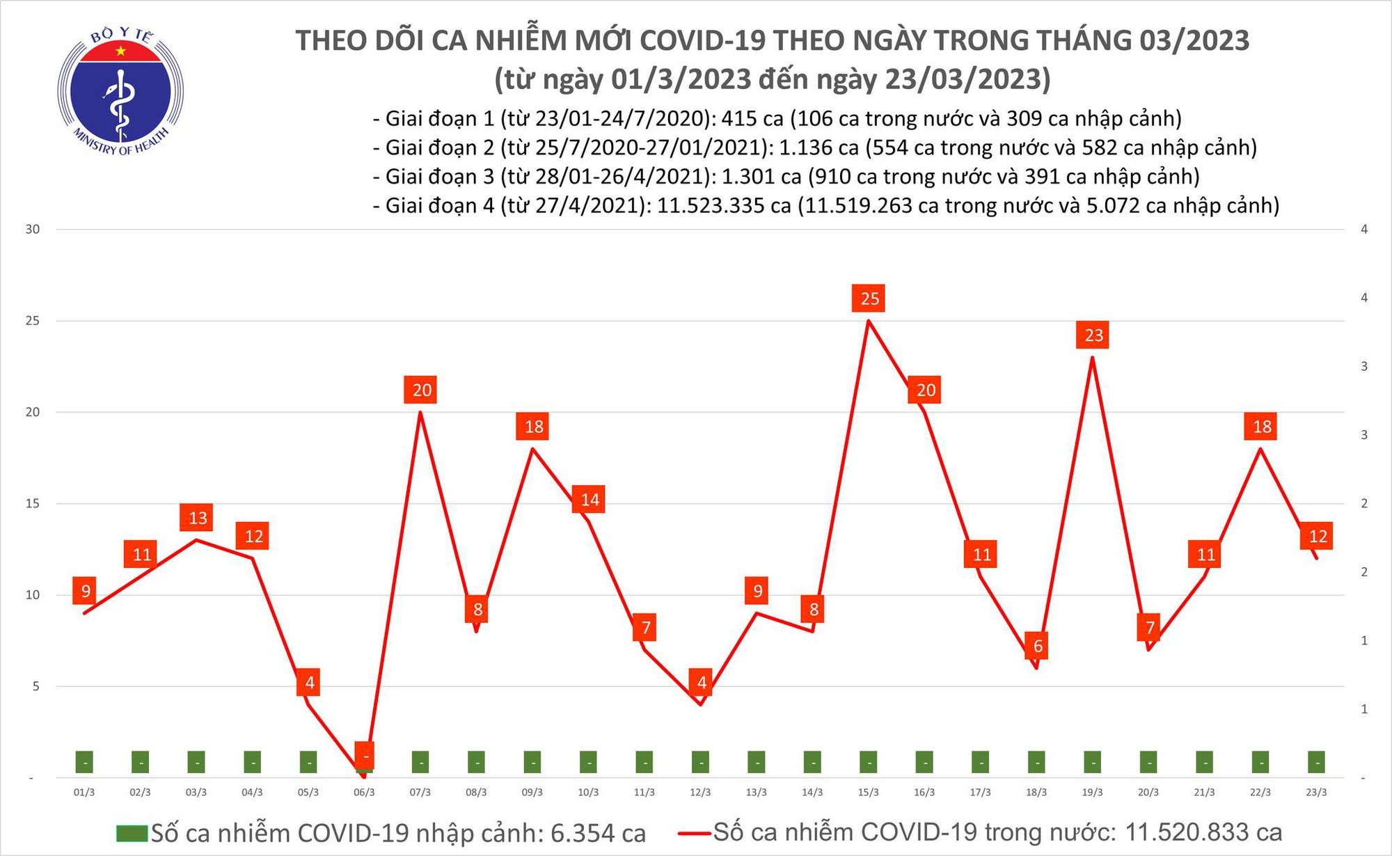 24/03/2023 01:08Ngày 23/3: Cả nước ghi nhận 12 ca mắc COVID-19 mới, số bệnh nhân nặng giảm sâu