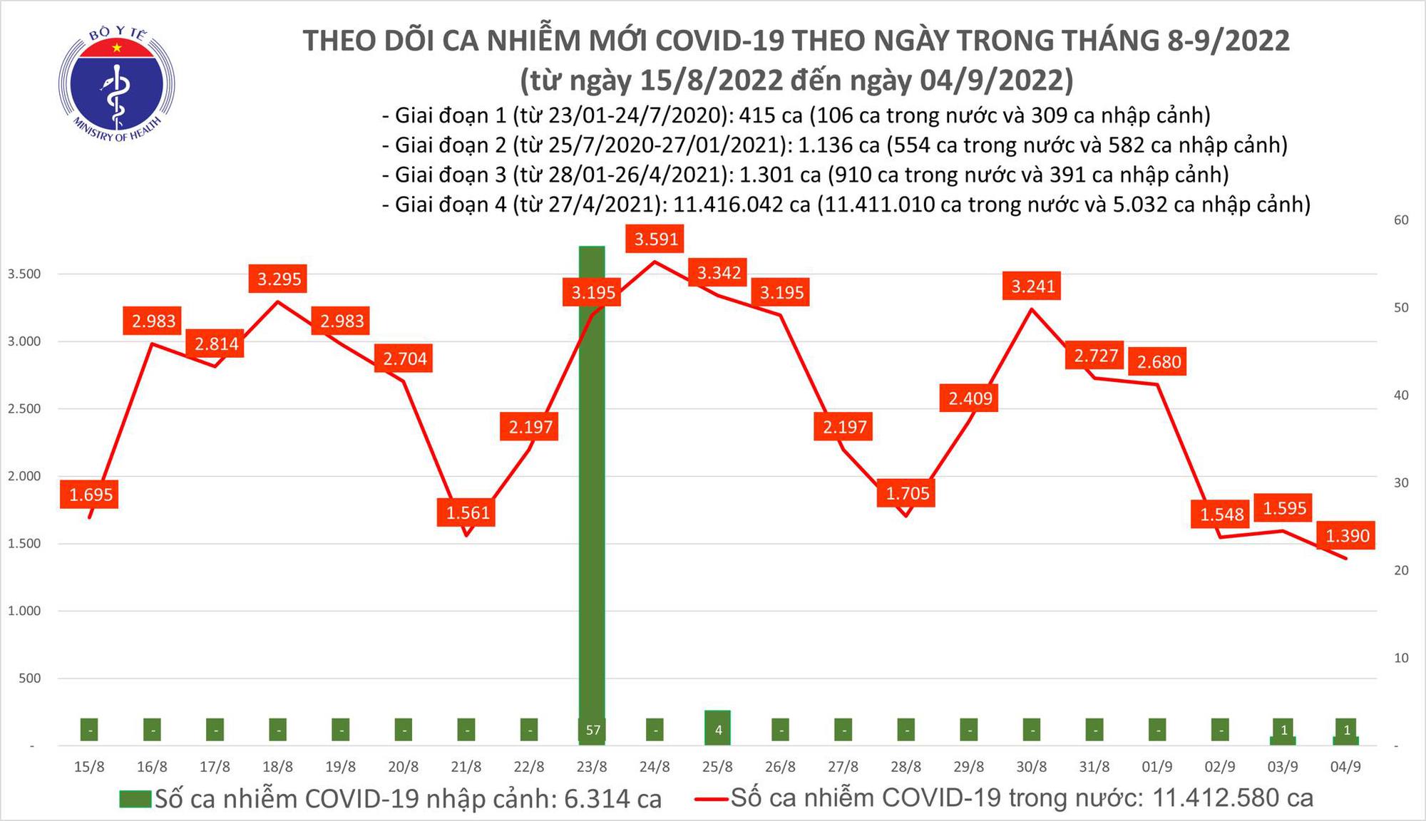 05/09/2022 00:56Ngày 4/9, số ca mắc tiếp tục giảm, 1 bệnh nhân tại Thanh Hoá tử vong