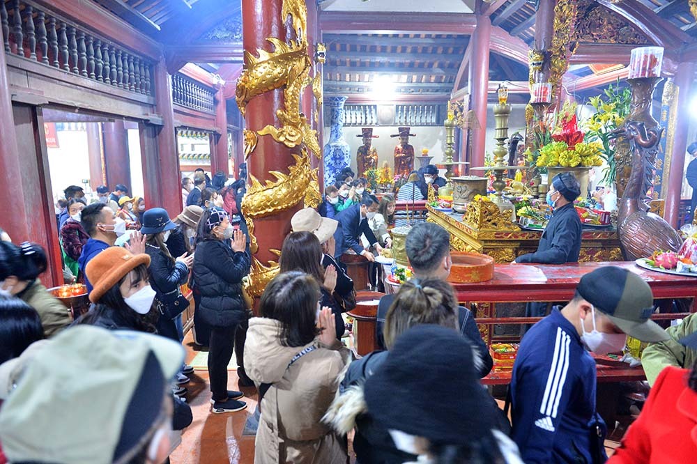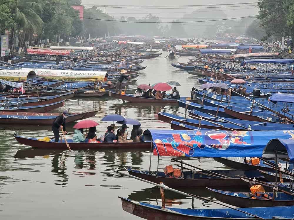Theo ghi nhận của VietNamNet, ngay từ sáng sớm, dù thời tiết tại xã Hương Sơn mưa dày hạt nhưng có đông người đi lễ đầu năm. Nhiều chủ thuyền làm việc xuyên đêm để phục vụ khách có nhu cầu. Đặc biệt, tại khu vực đền Trình có hàng trăm người dân đến làm lễ. Các lối ra vào đền chật kín người ra vào.