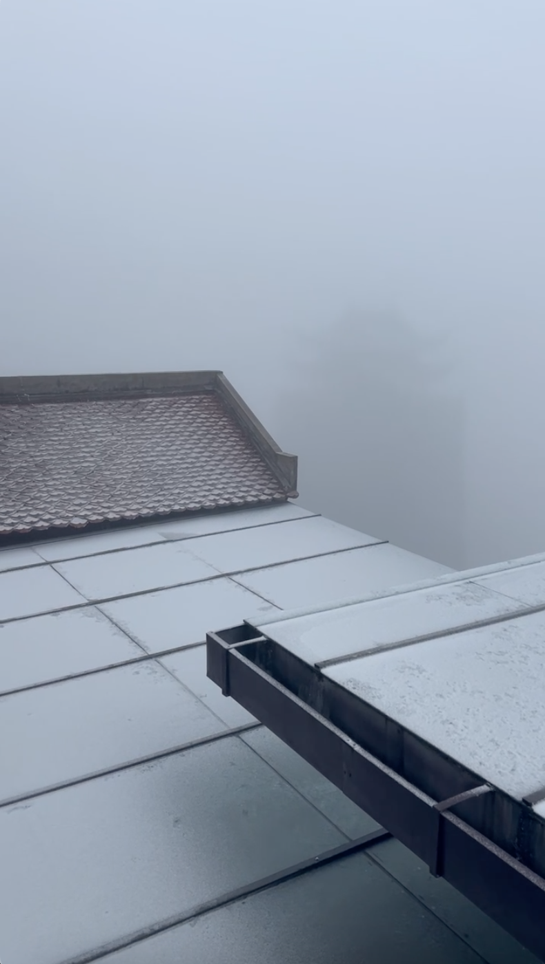 | Tuyết bất ngờ rơi tại đỉnh Fansipan vào chiều nay (26/1/2025) |