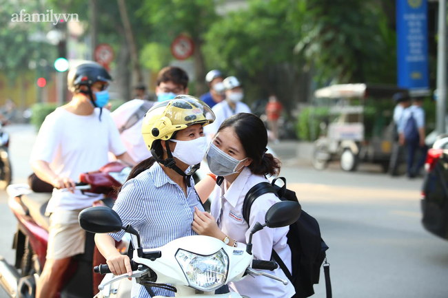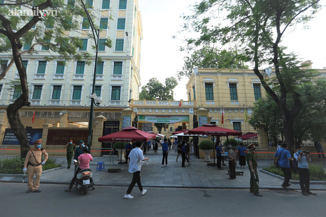 Hà Nội là nơi có số thí sinh dự thi đông nhất với 101.320 thí sinh đăng ký dự thi tại 188 điểm thi ở 30 quận, huyện, thị xã. 6h, các con đường đã đông hơn thường lệ, chủ yếu là phụ huynh đưa con đến các điểm thi. Dù 7h30 mới phát đề và 7h35 làm bài, thí sinh ở nhiều điểm thi được yêu cầu đến lúc 6h15 để đủ thời gian kiểm tra thân nhiệt, rửa tay sát khuẩn, gửi đồ trước khi vào phòng thi.