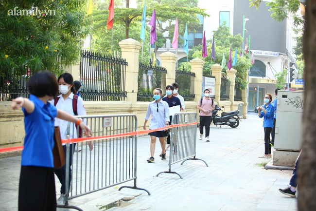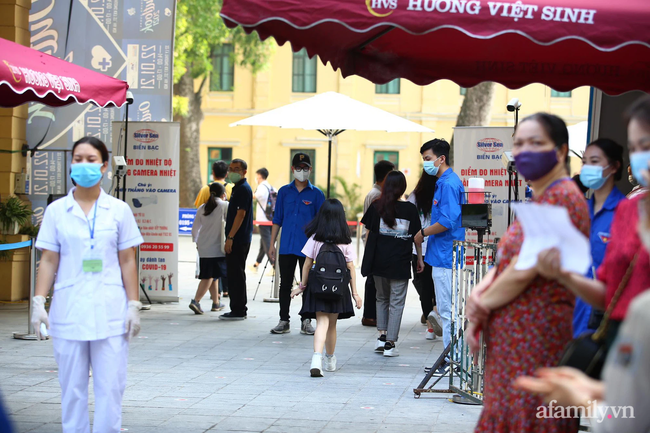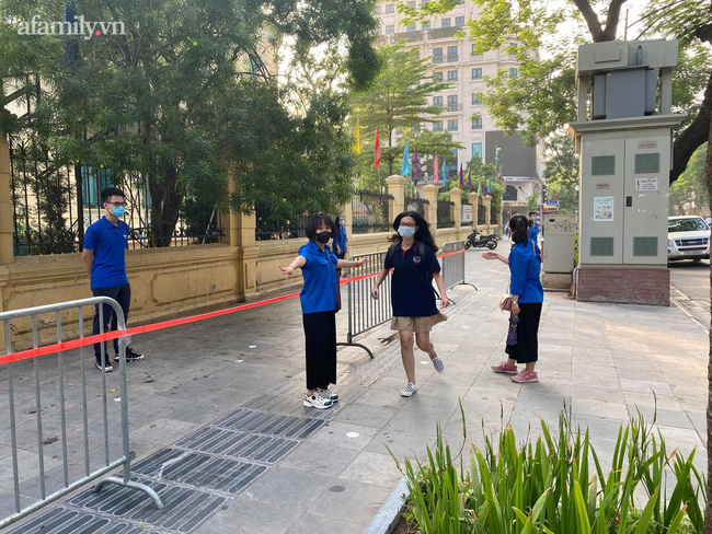 Ghi nhận tại trường THCS Trưng Vương (Hà Nội), từ 6h sáng, trường đã mở cổng, bắt đầu đo nhiệt độ cho thí sinh. Nhà trường phân luồng, mỗi làn có nhân viên y tế kiểm tra thân nhiệt và yêu cầu thí sinh sử dụng dung dịch sát khuẩn.
