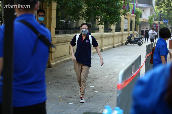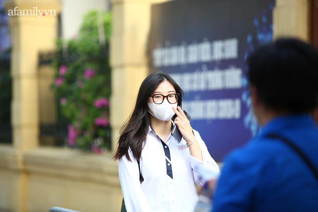Theo quy định, để phòng chống Covid-19, tất cả thí sinh được đo thân nhiệt, khử khuẩn trước khi vào phòng; đeo khẩu trang từ nhà đến điểm thi, trong quá trình làm bài và từ điểm thi về nhà. Các em chỉ được hạ khẩu trang lúc vào phòng thi để giám thị đối chiếu.