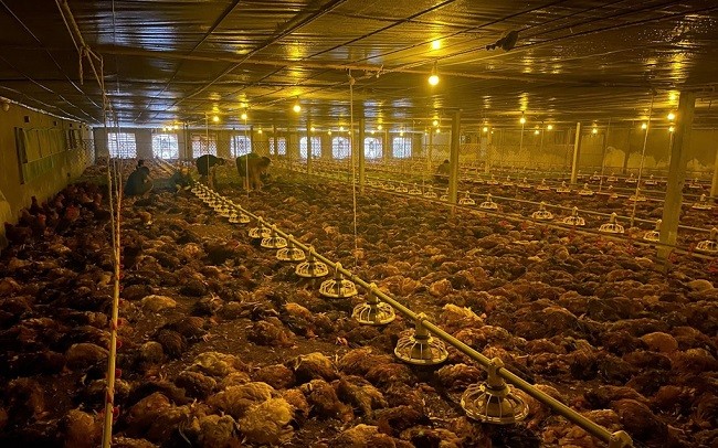 Trại gà của anh Huy có quy mô 10.000 con, hiện đã có 9.000 con gà bị chết, trọng lượng mỗi con ước khoảng 2,2-2,5kg. Tổng thiệt hại khoảng 25 tấn gà, ước tính mất khoảng 1,5 tỷ đồng.