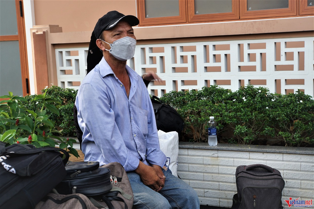Ông Dương Văn Mạng ngồi bần thần chờ nhận thi thể con mình là chị Dương Thị Kim Dung (26 tuổi, quê Sóc Trăng).