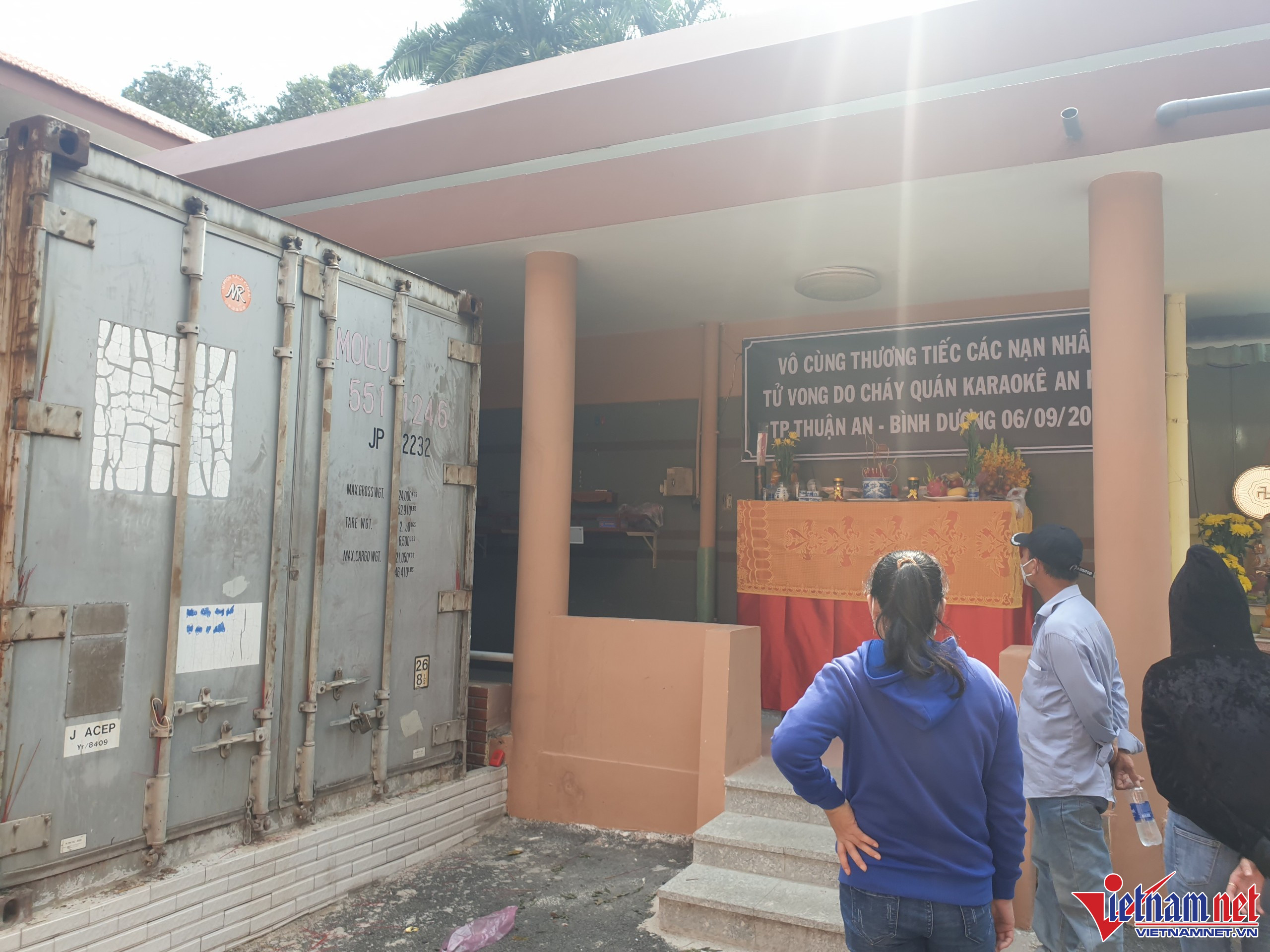 Cách bàn tưởng niệm vài bước chân là thùng container đóng kín.