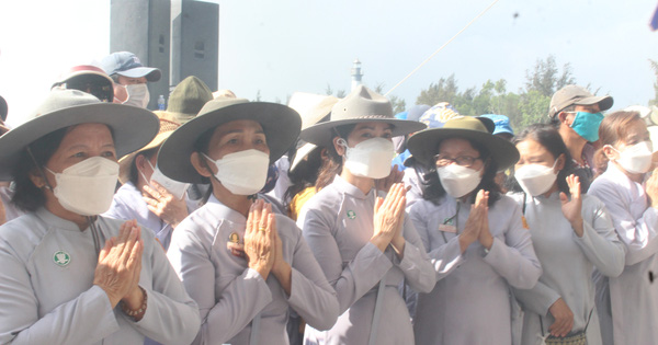 Từ sáng sớm, rất đông người dân TP Hội An cùng các tăng ni, Phật tử đã tập trung tại bãi biển Cửa Đại để tham dự lễ cầu siêu cho 17 nạn nhân, cầu mong vong linh các nạn nhân sớm siêu thoát.