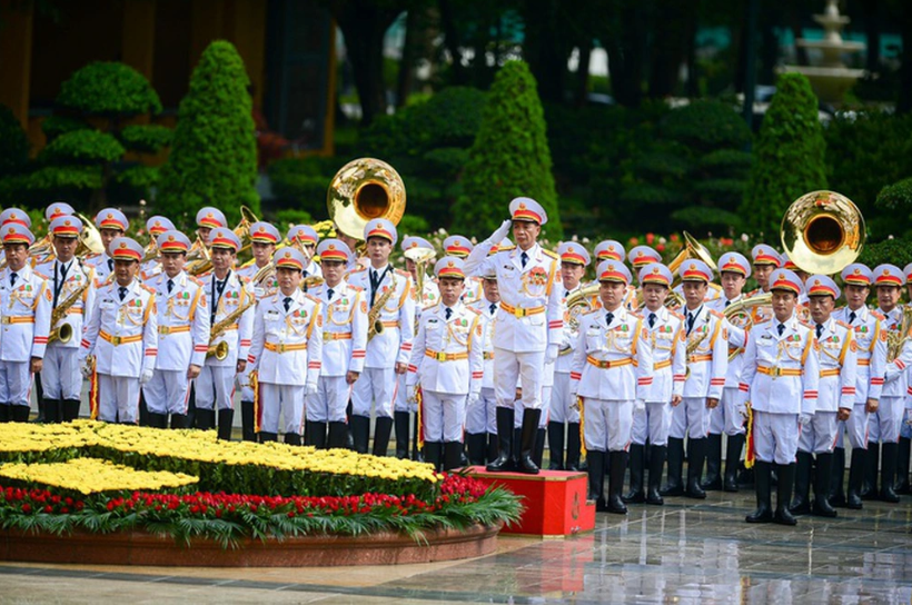 Lãnh đạo cấp cao ta cùng nguyên thủ quốc gia nước khách duyệt Đội danh dự;