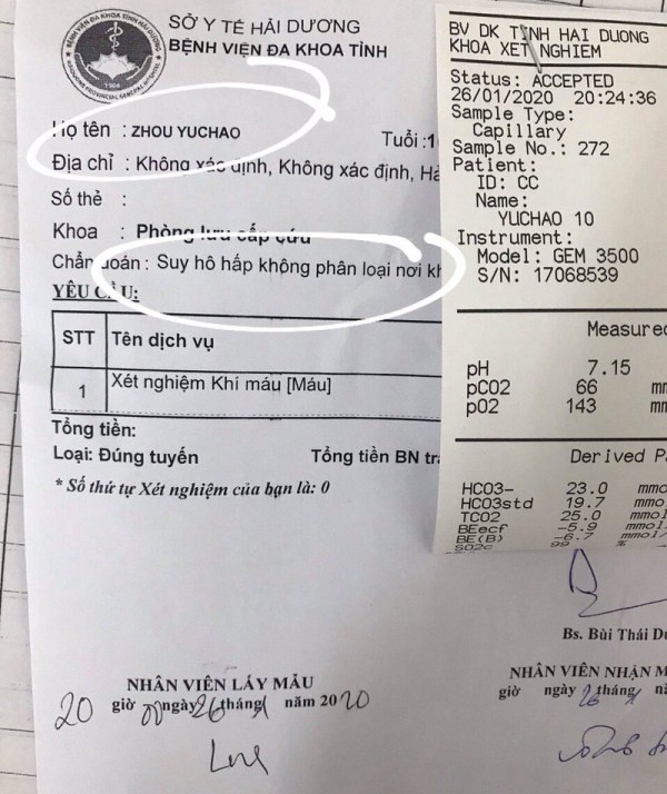 Trao đổi với PV vào hôm nay (27/1), đại diện Sở y tế tỉnh Hải Dương xác nhận, Bệnh viện Đa Khoa Tỉnh Hải Dương vừa tiếp nhận bệnh nhân Zhou Yuchao (10 tuổi, quốc tịch Trung Quốc) nhập viện với các triệu chứng ho, sốt, khó thở, niêm mạc nhợt nhạt, da tím tái nhưng không sốt, giống với các triệu chứng bệnh viêm phổi cấp do virus Corona.