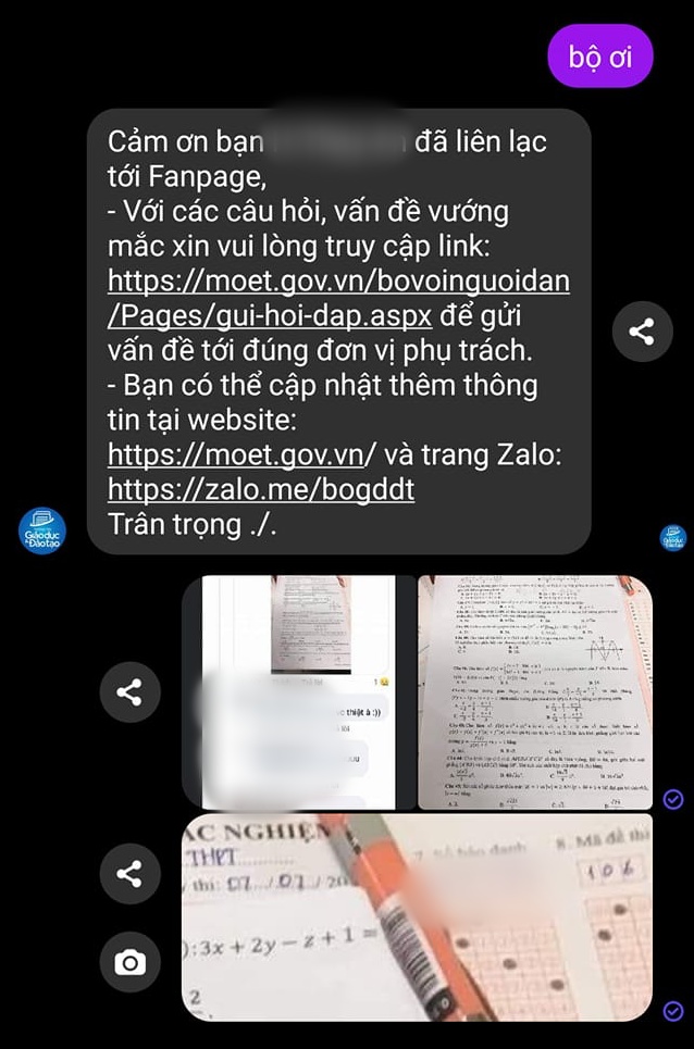 Theo đó, một số người đã nhắn tin vào fanpage của Bộ Giáo dục và Đào tạo để gửi ảnh tố cáo. Số khác gửi hẳn Email lên Bộ giáo dục để trình bày sự việc đang gây xôn xao.