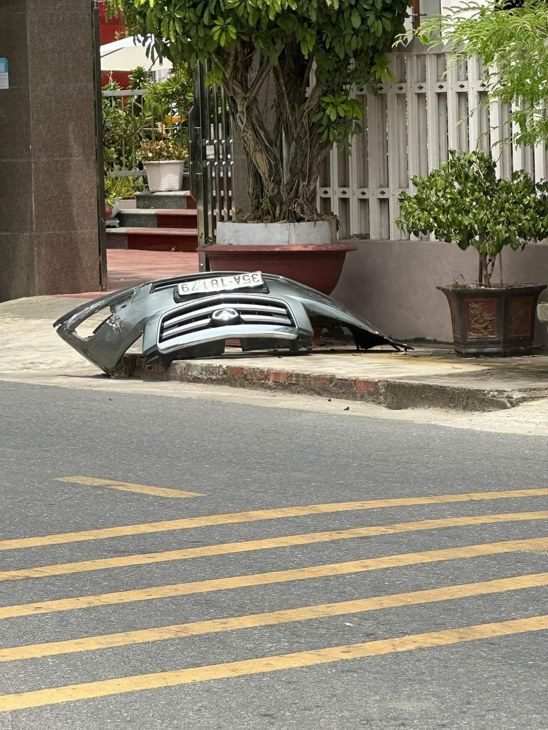 Theo người dân trong khu vực, nam tài xế sau đó tiếp tục lên xe rời khỏi hiện trường để "truy tìm" người đàn ông vừa bỏ chạy, bỏ lại một mảng đầu xe bị rơi tại hiện trường.