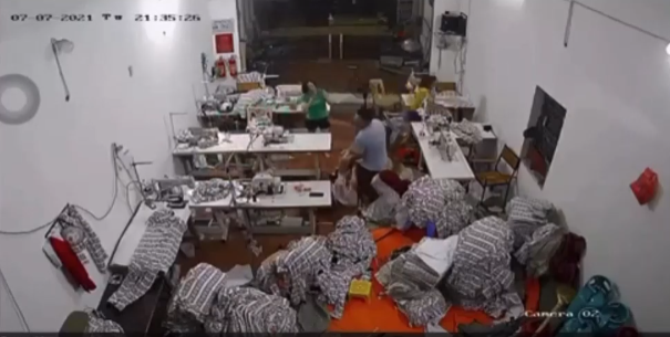 Theo nội dung đoạn clip ghi lại cho thấy, vào khoảng 21h35' tối ngày 7/7 vừa qua, một người đàn ông (được cho là chồng) với thái độ giận dữ, lao vào xưởng may để tìm người phụ nữ (được cho là vợ) đang ngồi làm may.