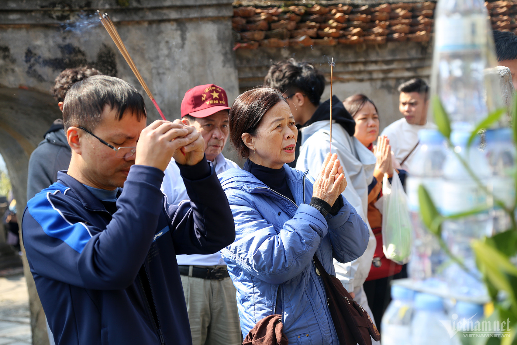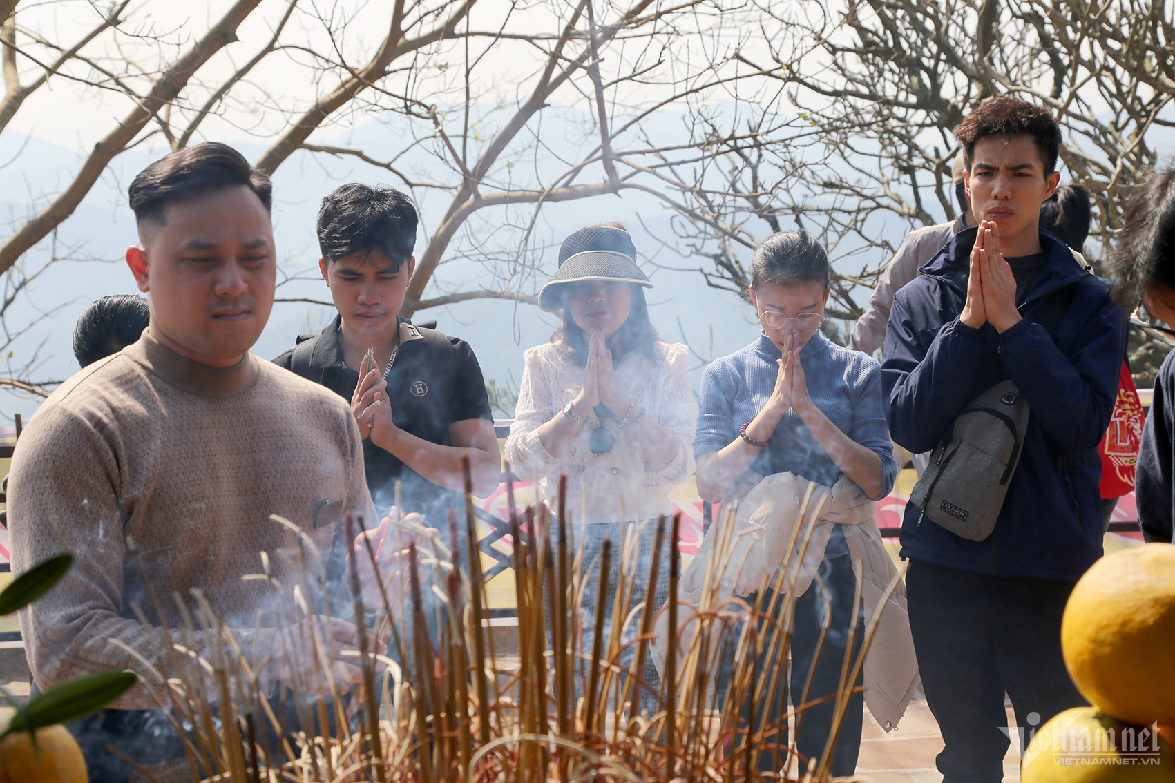Tại chùa Đồng, mọi người làm lễ dâng hương, cầu may mắn đầu năm.