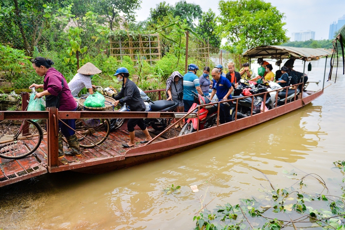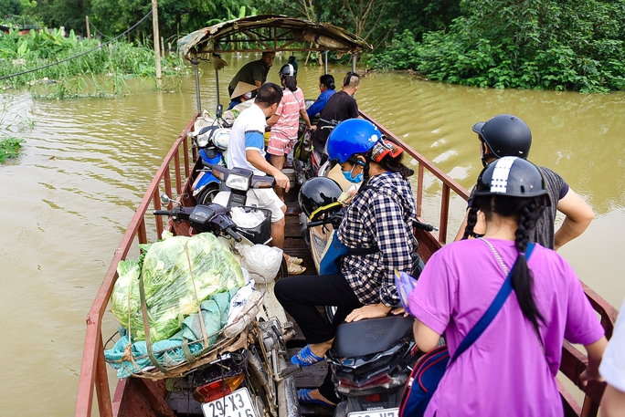 Người dân buộc phải đi đò để có thể ra vào khu vực bãi bồi sông Hồng. Đây là khu vực trồng trọt của rất nhiều người dân kinh doanh, buôn bán nhỏ lẻ các loại rau, củ, quả. Mực nước dâng cao khiến con đường huyết mạch để vận chuyển nông sản của người dân gặp nhiều khó khăn.