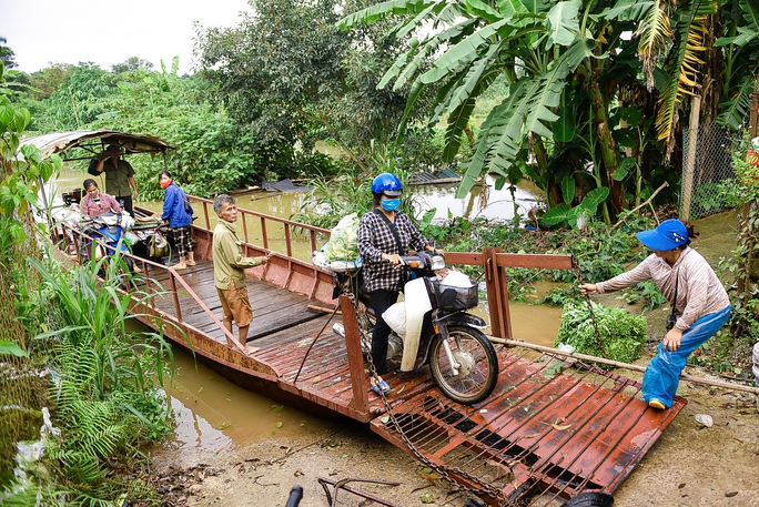 Đoạn đường đất dài khoảng hơn 200 m nếu không ngập chỉ mất vài phút đi xe máy thì nay người dân phải mất 15-20 phút tính cả thời gian chờ đò.