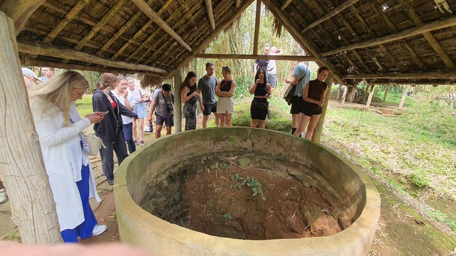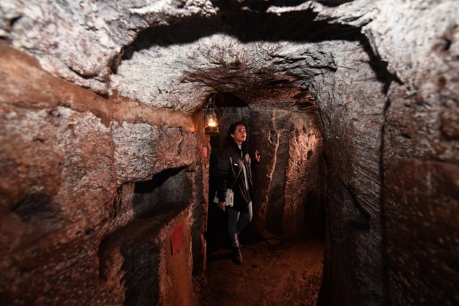 Đi theo những lối nhỏ bên dưới hầm dưới lòng đất, du khách như được hiểu rõ hơn về cuộc sống gian khổ thời bấy giờ. Bên dưới địa đạo hiện nay còn được bài trí thêm tượng, tiểu cảnh, giúp du khách dễ dàng tưởng tượng câu chuyện được hướng dẫn viên kể lại.