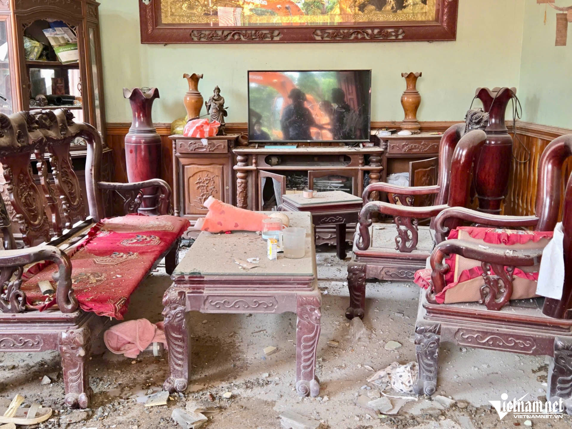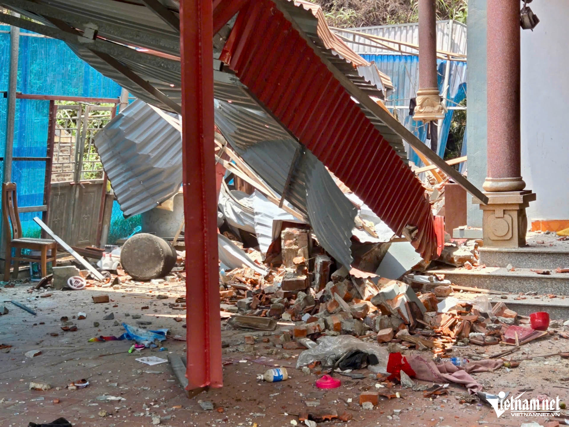 “Tiếng nổ rất mạnh, tôi cảm giác đồ đạc trong nhà bị rung nhẹ. Mọi người trong khu đều giật mình, không hiểu chuyện gì xảy ra. Sau đó, tôi chạy ra ngoài sân thì nhìn thấy nhà ông Vi Văn Mừng sập đổ”, chị Bình nói.