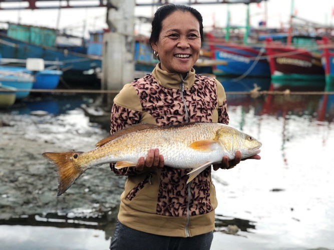 Trong lúc đánh lưới tại cửa sông Loan, 2 anh Cao Minh Châu (SN 1968) và Cao Thành Tấn (SN 1970), trú thôn Thượng Giang, xã Cảnh Dương, huyện Quảng Trạch, tỉnh Quảng Bình, bất ngờ kéo lưới được một cặp cá khá to.