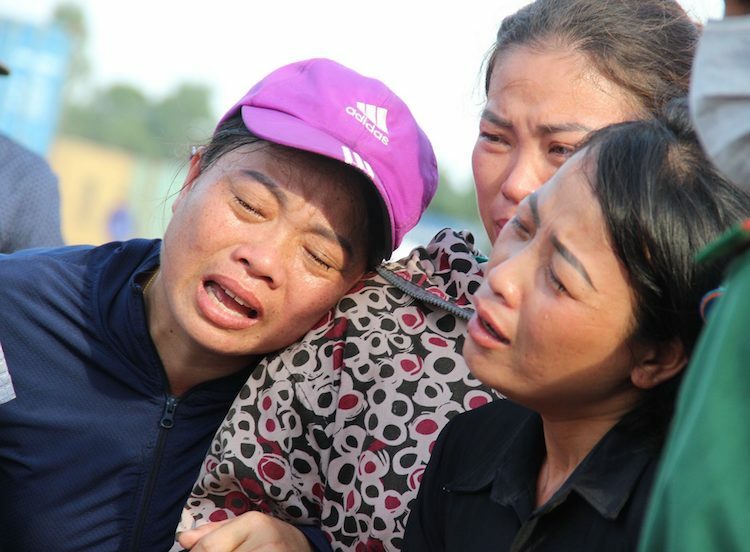 "Trước lúc lên tàu rời bến, anh dặn vợ và các con yên tâm ở nhà giữ sức khỏe đợi anh và con trở về. Sao lại ra nông nỗi này anh ơi, con trai thì vẫn chưa tìm thấy", chị Lý liên tục gọi tên chồng. Nhiều người đứng quanh rơi nước mắt cảm thông với nỗi đau của chị.