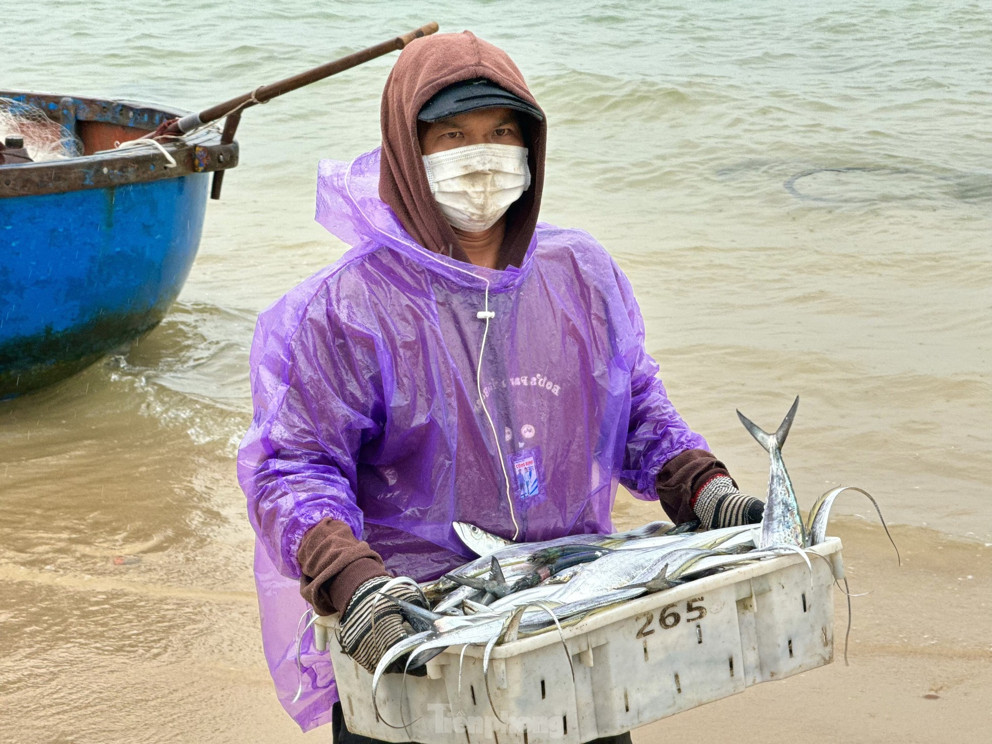 Ngư dân Phạm Thuận (trú thôn Phước Thiện, xã Bình Hải) cho biết, thời tiết êm thì biển rất ít cá nhưng khi có gió bão thì cá lại rất nhiều. Giá cá mùa này cũng cao gấp đôi so với ngày thường nên ngư dân ở đây tranh thủ ra biển kiếm tiền. “Gió lớn như thế này mà lưới đánh cá dài, kéo không kịp nên cũng rất nguy hiểm. Hôm nay trúng mánh, đánh bắt được 50kg cá sòng, với giá bán 40.000 đồng/kg cũng kiếm được gần 2 triệu đồng”, ông Thuận nói.