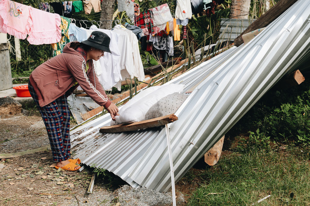 Gia đình cũng không mấy khá giả, chỉ mỗi cái ti vi là giá trị nhưng bị hư hỏng trong mưa bão. Sáng nay chị Thảo gom lại những thứ còn dùng được và quần áo mang ra phơi để cầm cự những ngày tiếp theo.