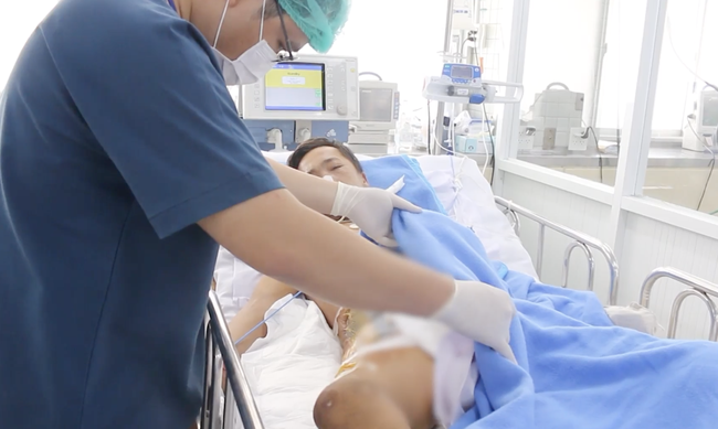 Bệnh nhân được hỗ trợ đặt nội khí quản, thở máy rồi chuyển ngay đến BV Chợ Rẫy vào trưa cùng ngày.