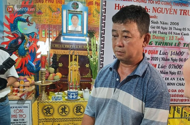 Mất con, người cha trạc tuổi chẳng còn biết gì nữa, nghẹn lời: "Thằng nhỏ muốn ăn mì xào bò tôi liền mua đến trước cổng trường cho con, nó còn khoanh tay chào tôi ngoan ngoãn để vào trường, nào ngờ...". Đó cũng là lần cuối cùng chú Trung được gặp con sau khi nhận được điện thoại thông báo vụ việc từ nhà trường.