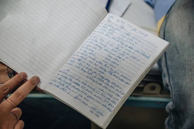 Hơn 30 trang kín mặt chữ, đầu bên này sổ là những người tặng hiện vật và tiền, còn bên kia là dãy hằng sa số tài khoản ngân hàng. Anh cẩn thận từng nét chữ, viết thật cụ thể và rõ ràng, chẳng toan tính gì, chỉ để nhỡ nếu sau này gặp lại và nhận ra nhau, anh còn có cơ hội báo đáp lòng tốt hay đơn giản là để “sau này con lớn con biết ơn!".